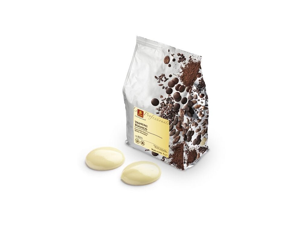 Ciocolata alba Vanini cu masa de cacao 39% si grasimi totale 43% de la producatorul italian ICAM este o ciocolata cu gust intens de lapte si vanilie, culoare delicata ivory si fluiditate perfecta.